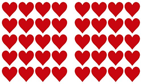 40 Adesivo Cuore, 40 mm, cuore, rosso, in pellicola PVC, resistente alle intemperie, Adesivi