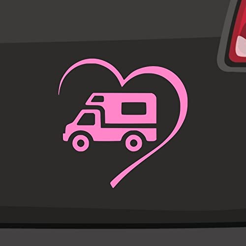 1 adesivo a forma di cuore con camper, 20 x 20 cm, rosa