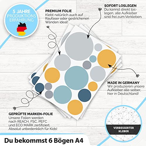 Adesivo murale 100 punti per la camera dei bambini - set di adesivi murali - colori pastello, punti da incollare adesivo da parete decorazione murale, Blu - giallo - grigio - menta