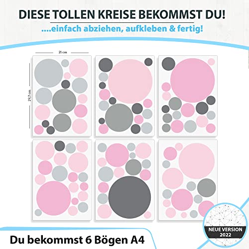 Adesivo murale 100 punti per la camera dei bambini - set di adesivi murali - colori pastello, punti da incollare adesivo da parete decorazione murale, Pastello - rosa - grigio