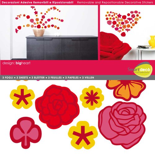 Adesivo da parete - Bighe Art fiore misura 31 x 31 cm adesivi murali 3 fogli, etichetta decorazione da parete