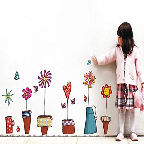 Adesivo da parete Fiori di fiori Piccoli piante da giardino Farfalle Carta da parati smontabile della parete del vinile della parete della stanza da bagno Camera da letto della stanza da bagno dell'autoadesivo impermeabile del PVC