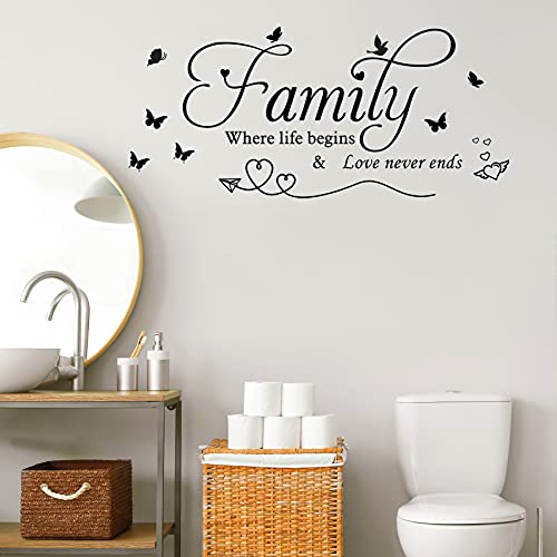 Adesivo da parete con scritta in lingua inglese “Family Where Life Begins and Love Never Ends Disse” in vinile rimovibile per soggiorno, camera da letto, cucina
