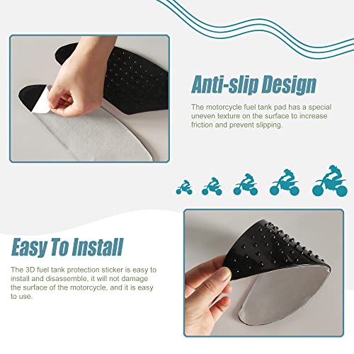 Installazione facile: il pad del serbatoio della motocicletta è super appiccicoso con supporto autoadesivo, che è facile da installare, molto facile da incollare e rimuovere, non danneggerà la superficie del serbatoio del carburante e facile da usare.