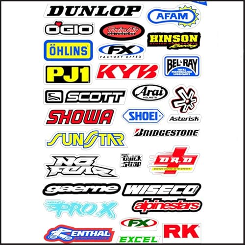 Adesivo in vinile resistente alle intemperie Adesivo per moto Adesivo sponsor (8 fogli per set) Adesivo per Grafica per bicicletta Computer Kit per scooter Modello Logo Foglio per casco(17,5 x26,5 cm)