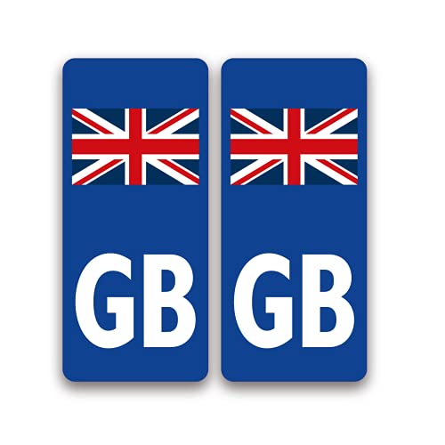 2 adesivi per targa di immatricolazione con lettere GB e bandiera del Regno Unito
