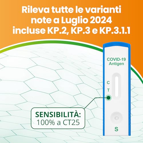 COMODO E PRATICO: Kit confezionati individualmente per la massima praticità. Portali ovunque con te o condividili con parenti e amici. Verificato su tutte le varianti VOC dichiarate dall'OMS al 2 Luglio 2024 incluse KP.2, KP.3 e KP.3.1.1. Testato in Italia nei nostri laboratori