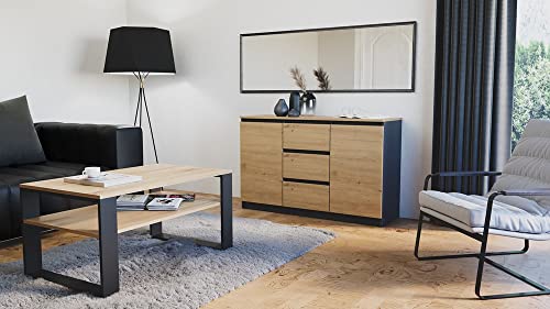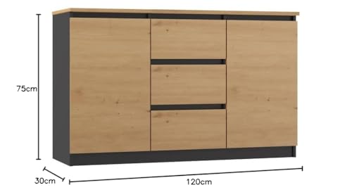 ADGO 2D3S Cassettiera con 2 ante e 3 cassetti 120x75x40 cm stile classico con ripiani per camera da letto, soggiorno, antracite/rovere Artisan (piano di lavoro Artisan) (spedizione in 2 confezioni)