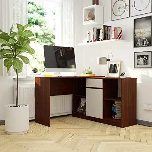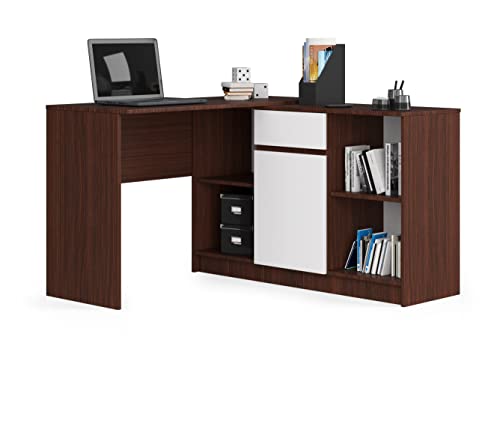 ADGO CLP B-17 Tavolo Modulare per Computer, con 4 Ripiani, 1 Mobiletto, 1 Cassetto, 1 Scrivania, con Vano Portaoggetti, Scrivania per Lavoro, Studio (Spedizione in 3 Confezioni)(Wenge/Bianco)