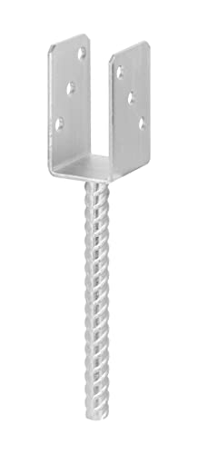 ADGO Base per palo con asta per muratura, fissa, fissaggio in calcestruzzo, base per palo per muratura, ancora con asta, asta a costine, asta a forma di U, acciaio zincato, argento (50 mm)