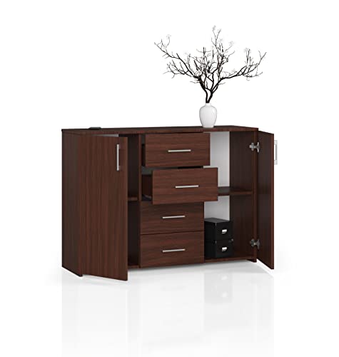 ADGO K45 - Cassettiera con 4 cassetti e 2 armadi, 110 x 80 x 35 cm, stile classico con mensole per camera da letto, soggiorno, cameretta dei bambini, salvaspazio (spedizione in 2 confezioni) (wengé)