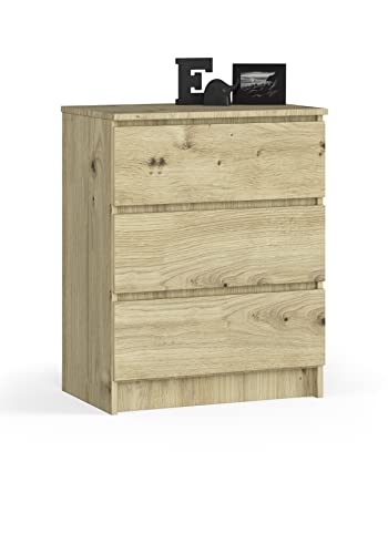 ADGO K60 3SZ CLP - Cassettiera con 3 cassetti, 77 x 60 x 40 cm, per vestiti, comodino, da posizionare accanto al letto, armadio classico con scaffali, salvaspazio (rovere Artisano)