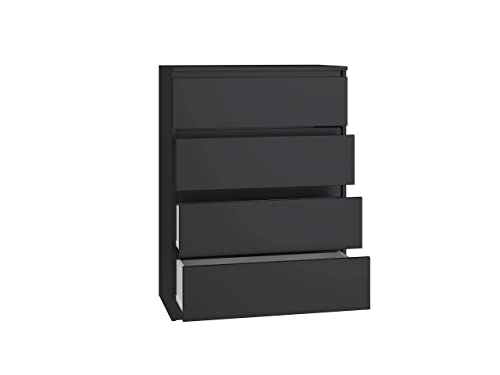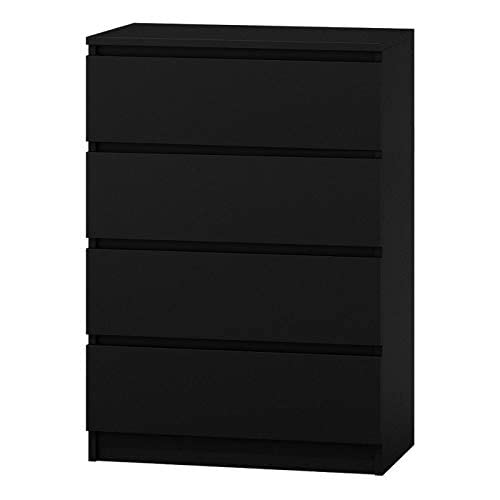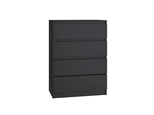 ADGO Malwa M4 - Cassettiera con 4 cassetti, 40 x 70 x 97 cm, scaffale classico con ripiani per camera da letto, corridoio, soggiorno, indipendente, salvaspazio, colore nero