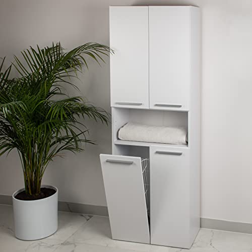 ADGO Nel - Mobile da bagno alto con 2 cesti portabiancheria integrati, autoportante (DK 2K, bianco opaco)