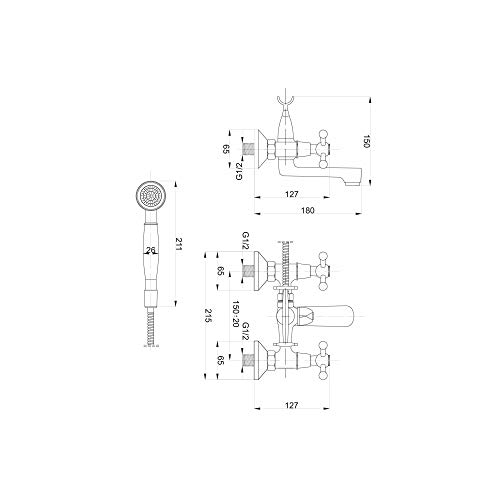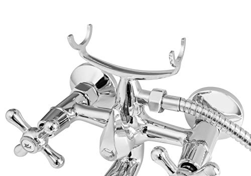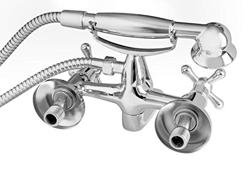 ADGO Rubinetto del Bagno Rubinetto Doccia a Parete con due Pomelli, Classico Retro Vintage Vittoriano antico con Supporto per Doccia Vassoio, Cromo Argento Cromato, 1 pezzo