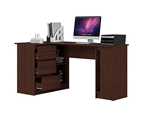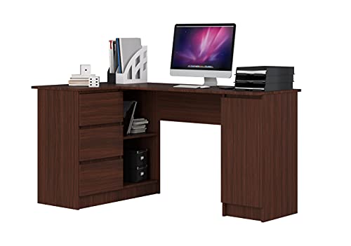 ADGO CLP B20 - Scrivania ad angolo per computer, 155 x 77 x 85 cm, scrivania, scaffale con vano portaoggetti, scrivania da ufficio, a forma di L (spedizione in 2 pacchetti) (sinistra, wengé)