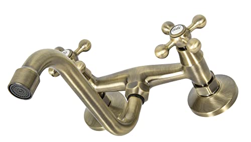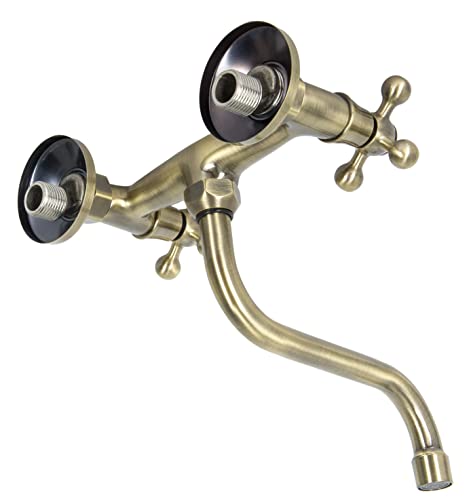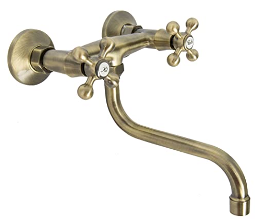 ADGO Stilo Rubinetto da Cucina per Lavello a Due Mani, Miscelatore da Parete con Due Bottoni (Ottone Antico)