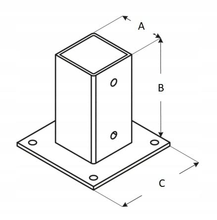 La base del palo di ancoraggio avvitata è un elemento strutturale che serve per il fissaggio del palo nel terreno della struttura dell'edificio. Dimensioni come da disegno: A: 100 x 100 mm, B: 150 x 150 mm, C: 150 x 150 mm
