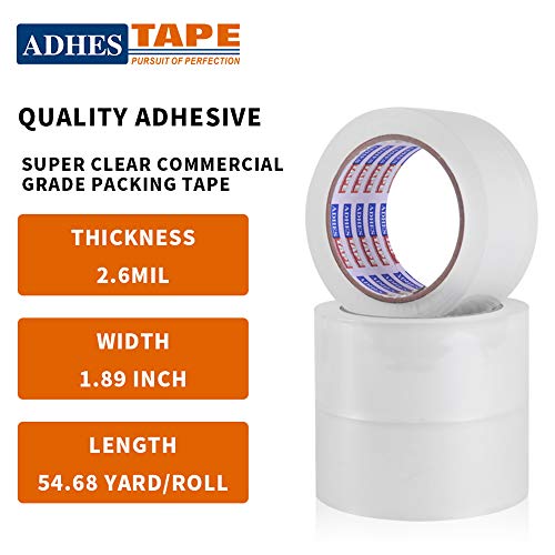 ADHES, nastro trasparente per imballaggi in ufficio e casa, rotolo di nastro trasparente ((SUPER CLEAR)48mm x 50m x2.6mil x 12 rotoli)
