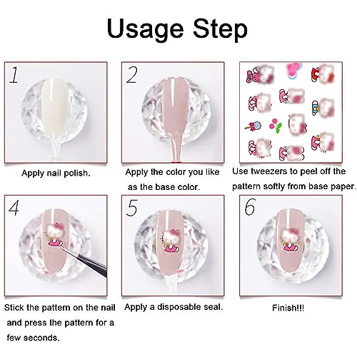 Riceverai 5 fogli di adesivi per unghie, super carini e facili da usare. Può essere utilizzato per decorare la propria Nail Art, nail design, evidenziazione e altro ancora.