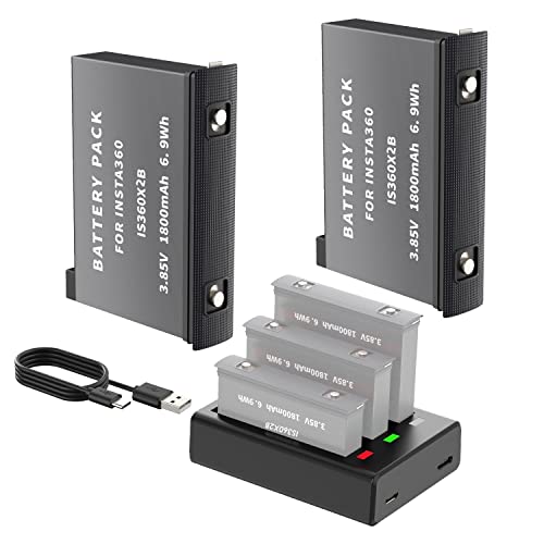 【Insta360 X2 Batterie Ricaricabili con Caricatore】 Batteria di ricambio compatibile con Insta 360 x2: compatibile con batteria ai polimeri di litio Insta 360 x2 da 1800 mAh: tensione di carica limitata: 4,40 V;
