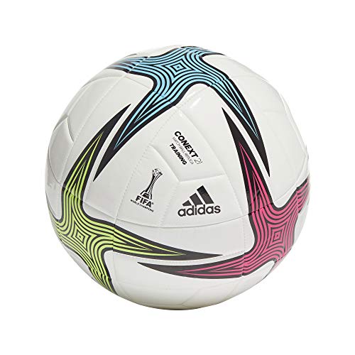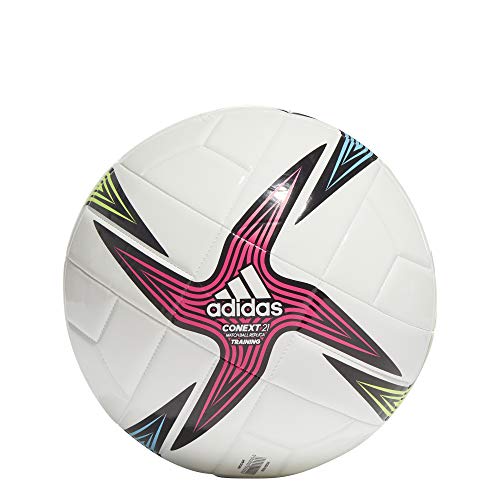 Adidas CNXT21 TRN, Pallone da Calcio ricreativo Uomo, Top:White/Black/Shock Pink/Signal Green Bottom:Bright Cyan, 3