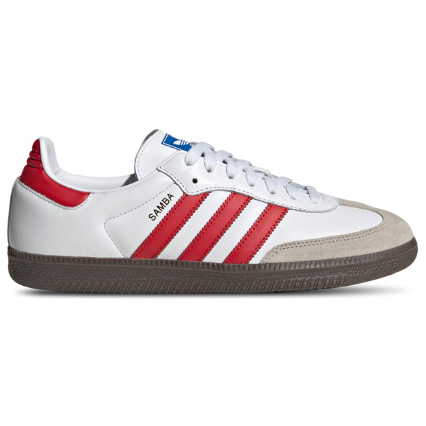 Inspired by the original indoor football training shoe, these Samba OG shoes still have it after more than 70 years. The leather upper, serrated 3-Stripes and reinforced toe stay true to the adidas original. Add in suede accents and heel patches, and you have a modern classic. Regular fit. Lace closure. Suede and leather upper. Textile lining. Gum rubber outsole.