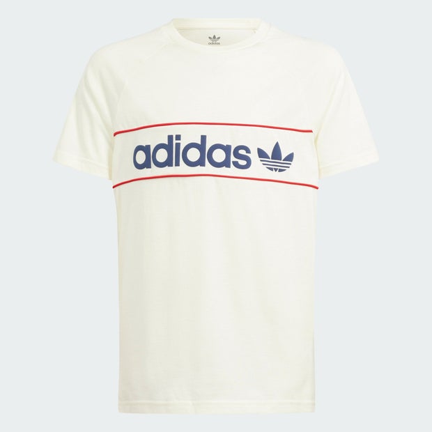 Your new favourite go-to, this adidas tee for juniors delivers sporty style with a modern twist. Updating the classic with cutlines and team inspiration from the past, it's made for everyday wear and easy comfort. Meet the next essential addition to your rotation. The cotton in this product has been sourced through Better Cotton. Better Cotton is sourced via a chain of custody model called mass balance. This means that Better Cotton is not physically traceable to end products. Find out more here: https://bettercotton.org/who-we-are/our-logo/ Regular fit. Ribbed crewneck. 100% cotton single jersey.