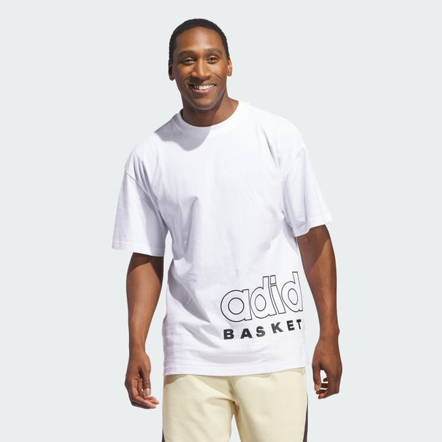 Push your game to the max in this adidas Basketball Select Tee. Made for real players, this tee lets you focus on crossing over defenders instead of your clothes. A comfortable cotton single jersey build helps you stay cool under pressure. adidas Basketball graphics on the front and back reps your drive to dominate. By choosing recycled, we are able to reuse materials that have already been created, which helps to reduce waste. Renewable materials choices will help us to remove our reliance on finite resources. Our products made with a blend of recycled and renewable materials feature at least 70% total of these materials. Regular fit. Ribbed crewneck. 100% cotton single jersey.