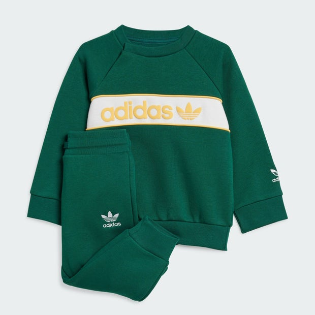 Questo completo adidas infant coordinato rivisita un iconico modello adidas. La silhouette e il logo oversize richiamano la nostra storia sportiva, mentre la struttura in tessuto felpato con dettagli a coste assicura una morbidezza superiore. Perfetto per esplorare, dormire e giocare, è un capo ideale per le icone di stile di domani. Il cotone di questo prodotto è stato reperito tramite Better Cotton. La filiera del cotone è complessa, quindi viene utilizzato il cosiddetto "bilancio di massa" per la tracciabilità dei volumi. Questo è un sistema che consente di sostituire o miscelare Better Cotton con cotone convenzionale a condizione che volumi equivalenti provengano da Better Cotton. Maggiori informazioni sono disponibili su: https://bettercotton.org/who-we-are/our-logo/ Vestibilità regolare. Felpa: girocollo a coste. Tessuto felpato, 70% cotone / 30% poliestere riciclato. Giacca e pantaloni: polsini e orli a coste. Pantaloni: girovita elasticizzato con cordino.