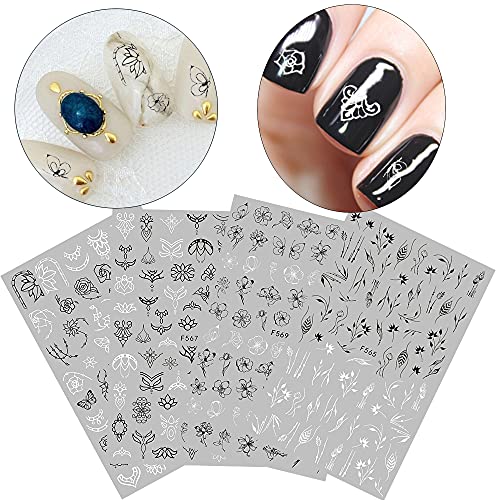 【Design Eccellente】 10 fogli di adesivi per nail art bianchi neri, ci sono più di 640 modelli. I nostri adesivi per unghie si basano su elementi classici popolari: viti, foglie d'acero, fiori e così via. Gli elementi classici non passeranno mai di moda.
