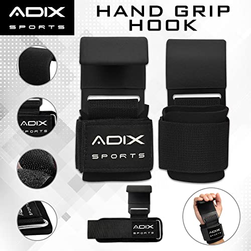 ADIX Sports - Ganci per sollevamento pesi, rivestimento in gomma antiscivolo, doppia cucitura con neoprene imbottito spesso 8 mm