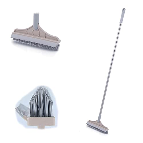 [2 in 1 Design] Served as brush and scraper, sturdy bristles scrub broad surfaces and fit into corners while bristles are shaped to get into corners, recesses and grout lines, after brushing the floor, you can easily scrap the sewage. 120 degree rotating brush head, triangular convex bristles, rubber soft plate.