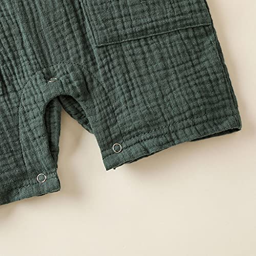 ADLOASHLOU Estate Neonata Pagliaccetto Tutina Bambino Tuta Mussola Cotone Lino Tute Senza Maniche Vestiti Neonato Neonato Unisex Neonato E Bambina Bottone Tinta Unita Tuta Taschino Tuta Green-12-18M