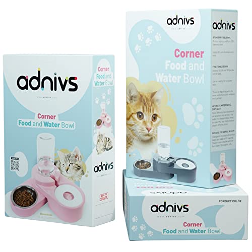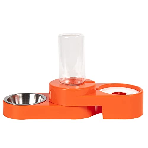 Adnivs Set di ciotole rotanti ad angolo per acqua e cibo Ciotola per cibo in acciaio inox 250 ml e ciotola per acqua con distributore automatico di acqua 1000ml (Arancia)