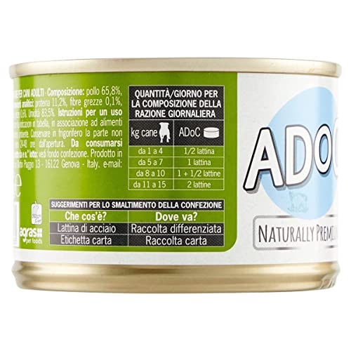 ADoC Dog Cibo Umido per Cani MIX 4 - Trancetti di Tonnetto, Filetti di Pollo, Anatra e Manzo - 24 Lattine da 170gr