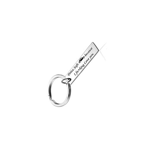 Adokiss - Portachiavi in acciaio inox, con targhetta militare incisa Drive Safe Because i fu King Love You, portachiavi per auto, portafortuna, argento, 4,5 x 1 cm