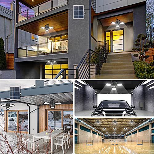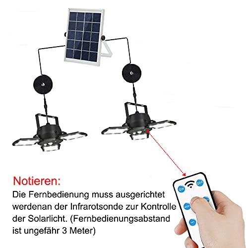 【Design a doppia testa】 La lampada solare e il pannello solare sono separati, la distanza tra i due portalampada e il pannello solare è di 5 m ciascuno, in modo che sia in interni ed esterni come garage, fienile, giardino, si spenga e si ricarica automaticamente, e si illumina al buio. Questo modello aggiunge una modalità di luminosità di 24 ore per soddisfare le esigenze dei garage che anche di giorno. di luce e di luce