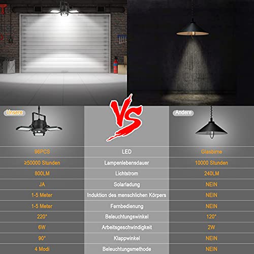 【 Angolo regolabile e luci solari luminose】 Lampada a sospensione solare a tre foglie. Ogni foglio può essere regolato a 120°, in modo che la luce possa essere orientata esattamente dove serve. Questa lampada solare di sicurezza dispone di 96 LED bianchi progettati per un'illuminazione ad alta luminosità in una vasta area. Produce oltre 800 lumen.