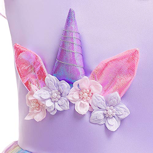 AdoraDouble Costume da Principessa Unicorno Arcobaleno Vestito da Halloween Carnevale Bambina Abito Costume di Cosplay Party di Natale Vestito Fantasia Unicorno Costume Viola 109, 3-4 anni