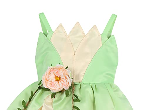 AdoraDouble Vestito Principessa Tiana Bambina Costume Festa Compleanno Carnevale Cosplay Ragazza Abito Sera Cerimonia Vestiti Abiti con Maniche e Accessori Verde 01689, 3-4 anni