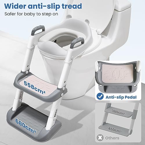 Adoraland Riduttore WC Bambini Scaletta, Riduttore WC Bambini con Scaletta Riduttore WC Sedile del Water con Seggiolino per Bambini Pedana Antiscivolo Anti-Spruzzo WC Bambini