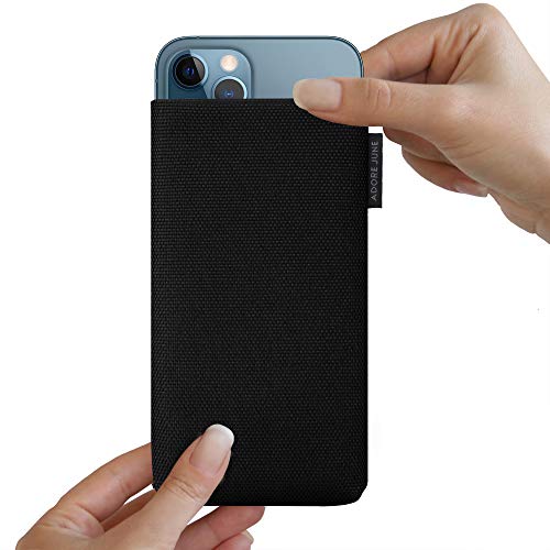 Adore June Custodia Classic Recycled Nero Compatibile con iPhone 13 PRO Max/iPhone 12 PRO Max, Tessuto Moderno in R-PES sostenibile. Prodotto in Europa