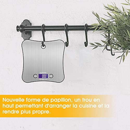 Adoric - Bilancia da cucina elettronica di precisione, 5 kg/1 g, in acciaio inossidabile, sensibile al tocco, schermo LCD, grande dimensione da appendere a forma di farfalla, bilancia a scala