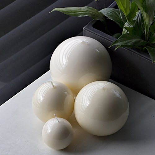 Adpal - Candela sferica color ecru 6 cm di diametro metallizzato, effetto seta opaco
