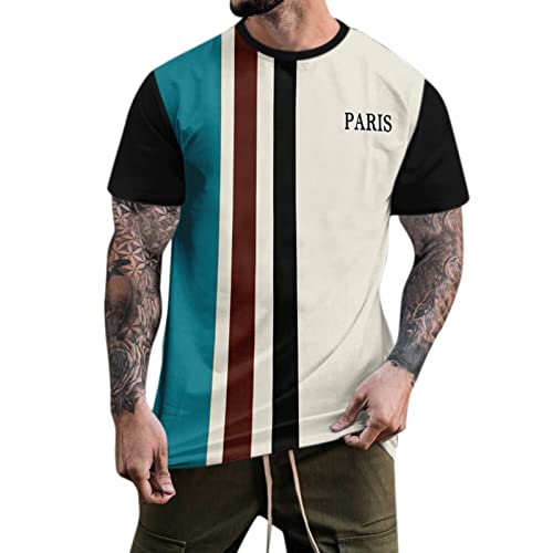 Adpan T-shirt da uomo a maniche corte con stampa a righe estive da uomo, maglietta a maniche corte con scollo rotondo, Blu, M