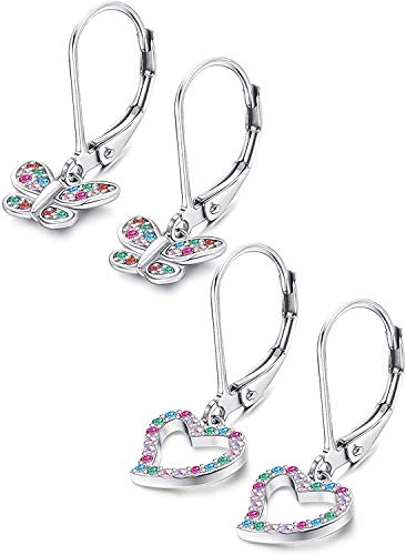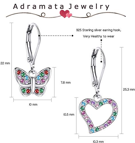 Adramata 2Paia CZ Leverback Orecchini per Donna Argento Sterling S925 Perno Cristallo Farfalla Cuore Orecchini Pendenti con Stella Carina Set di Orecchini Pendenti con Tartaruga per Ragazze