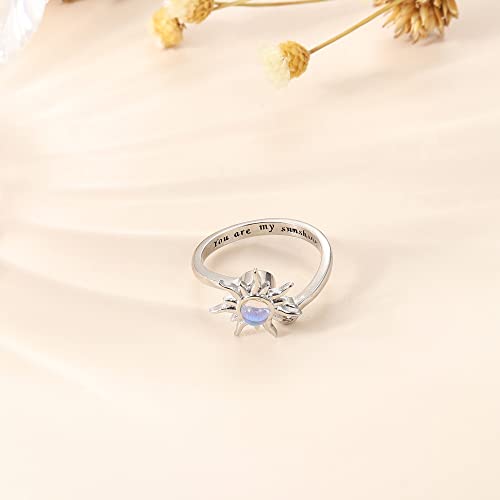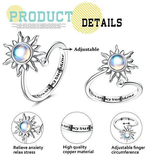 ADRAMATA 2Pcs Argento Anello Antistress per Donne Girasole Anello Anello di Ansia Pietra di Luna Anello Antistress Fidget Ring Anxiety Ring Aperto Regolabile Anello per Donne di Ansia
