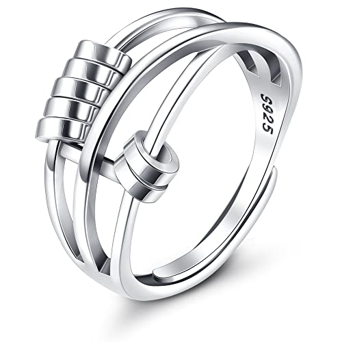 Adramata Anelli in Argento Sterling 925 per Donna Uomo Anelli Spinner Retro Anelli Fidget Regolabile