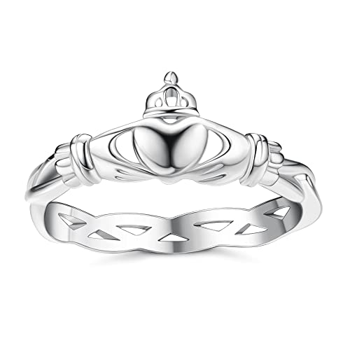 ADRAMATA Anello in Argento Sterling 925 Claddagh Anello per Le Donne Amore Cuore Irlandese Nodo Corona Anello per Le Donne Eternità Fede Nuziale Impilabile Promessa di Fidanzamento Amicizia